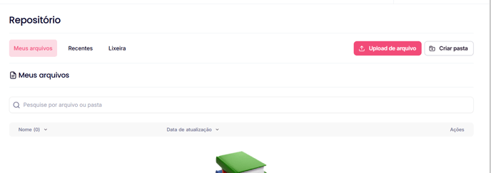 Ao acessar a plataforma, no canto esquerdo da tela, você encontrará o campo "Repositório". Ele é o lugar perfeito para compartilhar insumos criativos com a gente, como manual de marca, logos, fontes, paletas de cores e tudo mais que ajude a gente a entender a identidade visual da sua marca.